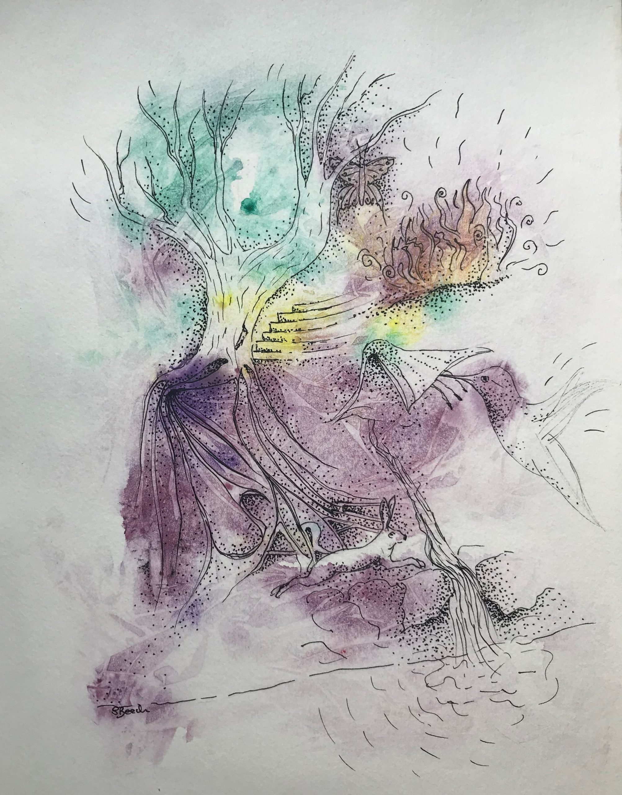 The artwork of their unique soul energy is created using watercolour and ink pen and is a reflection of how I ‘see’ their energy in the current moment. It may contain symbolic images, objects or animals and people that I perceive as I connect with their aura. I am often aware of power animals and spirit guides as I link to the energy. The artwork and reading may help the recipient to move forward in life. It can reveal aspects of their character and areas of their life that need healing. It is also a fascinating insight into how others ‘see’ them as a person.